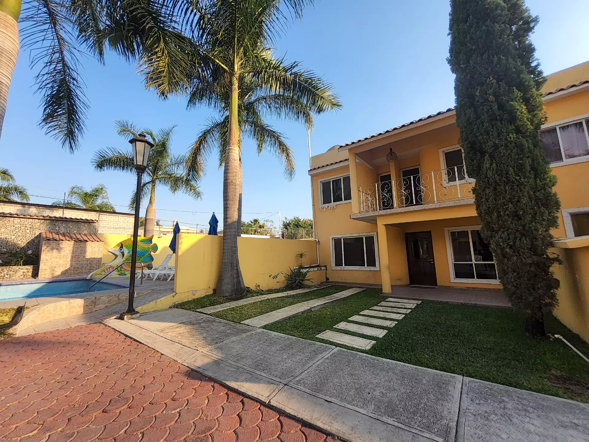 Área común con alberca, chapoteadero y 2 jardines.
