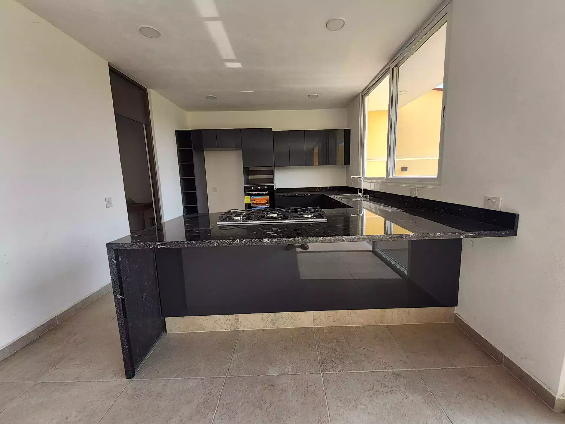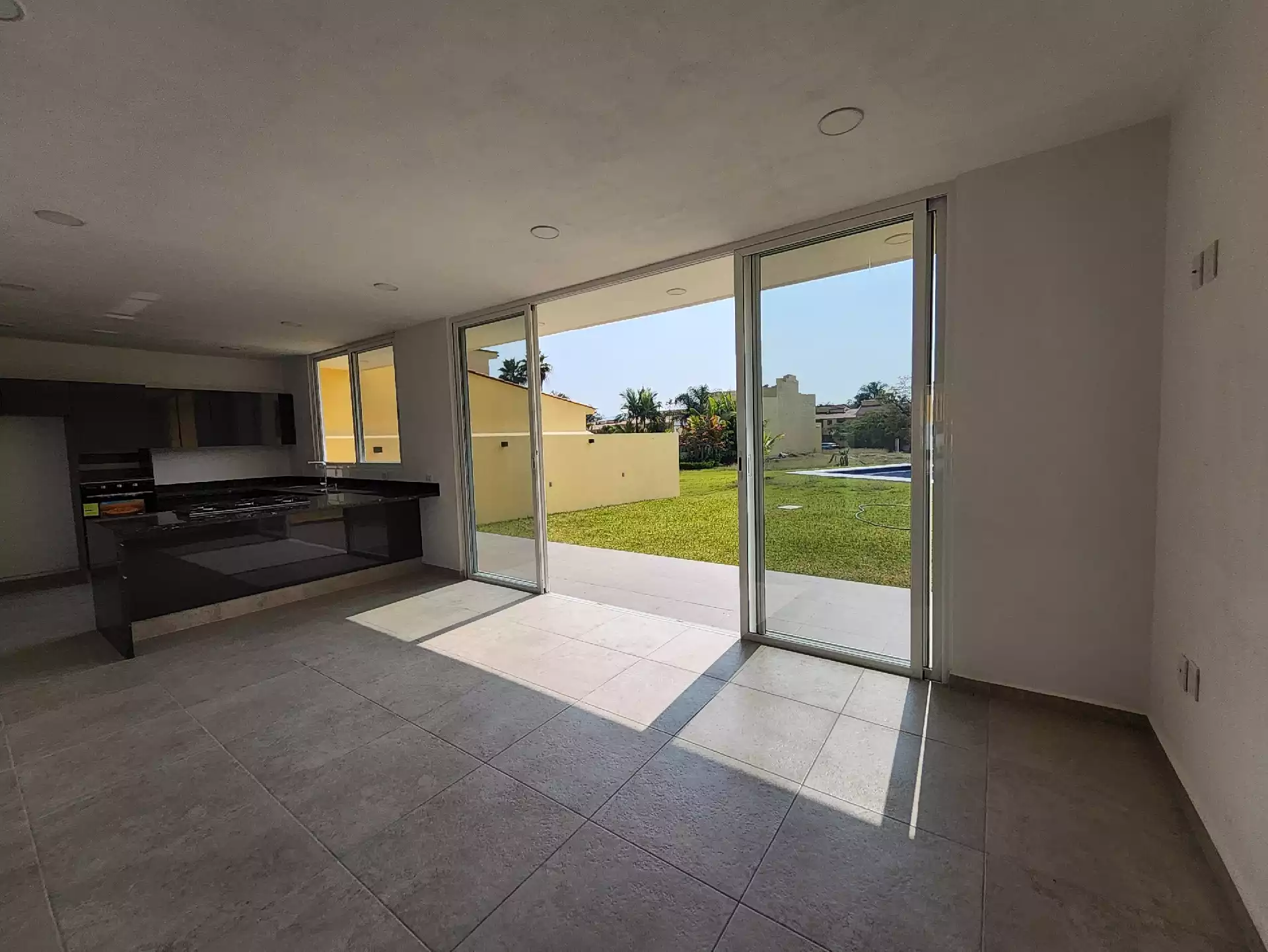 • Cocina equipada con isla, cubiertas de granito, horno, parrilla, etc. • Terraza con acceso y vista al Jardín trasero.